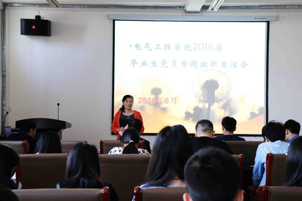6月3日上午,电气学院党委召开2016届毕业生党员专题组织生活会。学院党委副书记王艳菊同志和72名毕业生党员出席了会议。