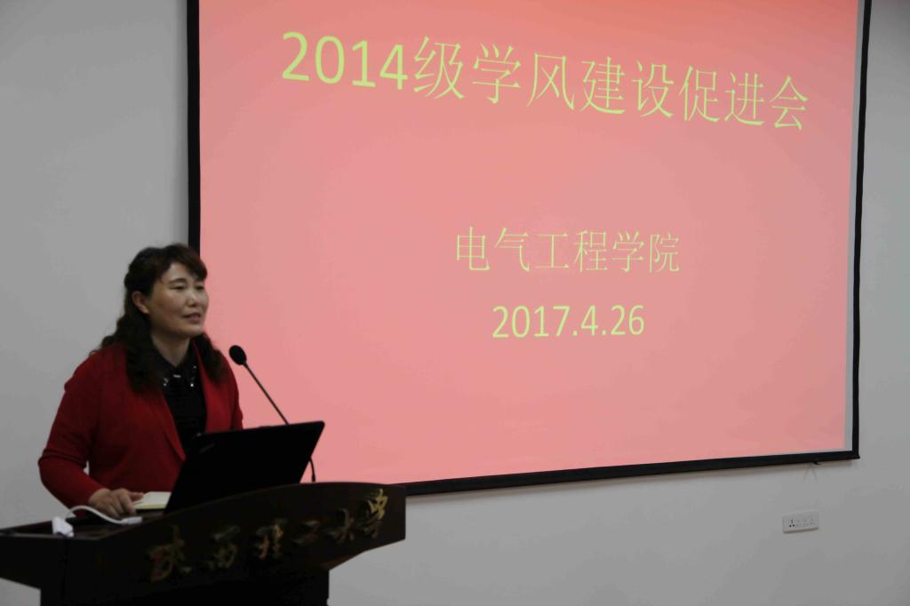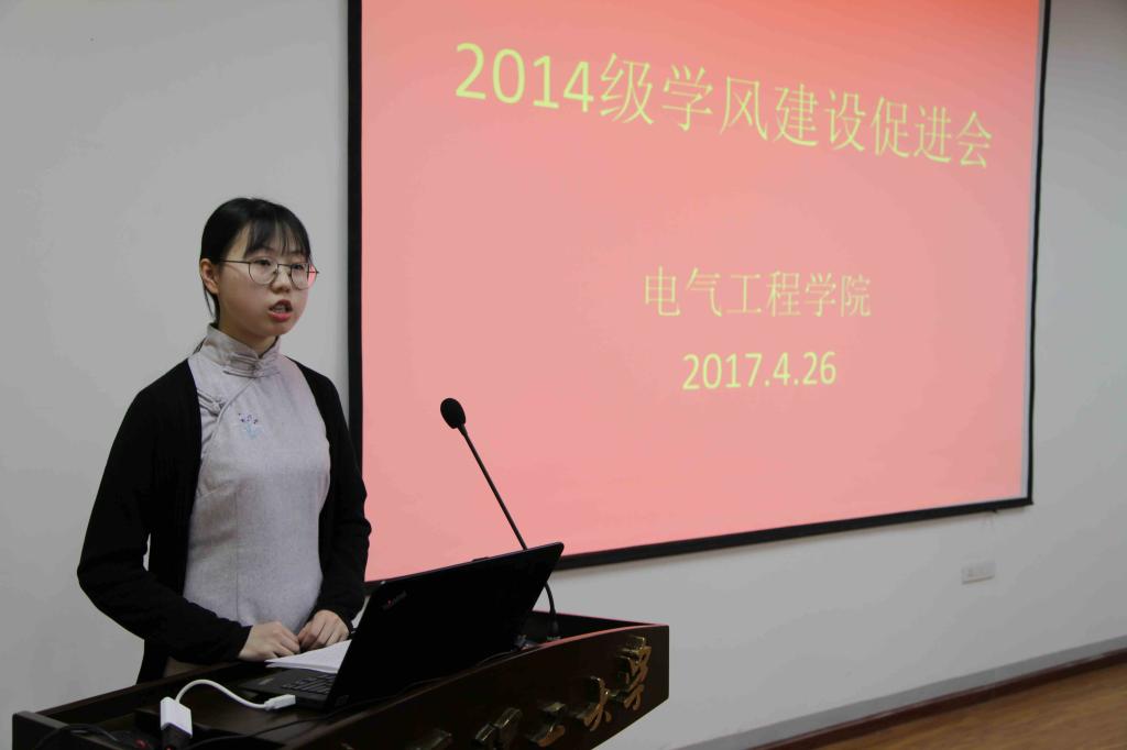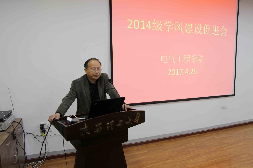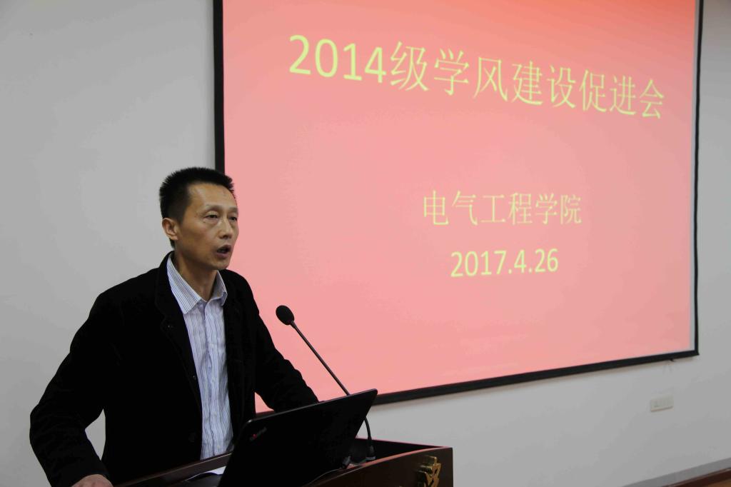 4月26日14:00点,电气学院在博思楼三楼学术报告厅举行了2014级学风建设促进会。电气学院院长马永翔教授、副院长李昂教授、全体辅导员、班主任和150余名学生代表参加了学风建设促进会。会议由电气学院副书记王艳菊同志主持。