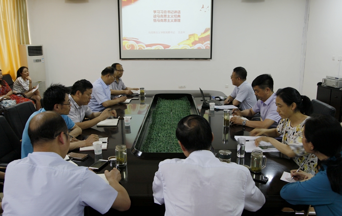 为了落实我校“学习新思想千万师生同上一堂课活动”的安排部署和具体要求,进一步深化对“习近平总书记重要讲话精神”的学习,持续将学习贯彻习近平新时代中国特色社会主义思想引向深入,2018年6月14日,www.5365.com党委邀请校宣讲团成员、马克思主义学院党委书记王吉平,为该院师生党员做了题为“学习习总书记讲话、读马克思主义经典、悟马克思主义原理”辅导报告,通过面对面宣讲,深化学习效果。www.5365.com党政领导、教工党员和学生党员参加了报告会。报告会由学院党委书记蒋军主持。