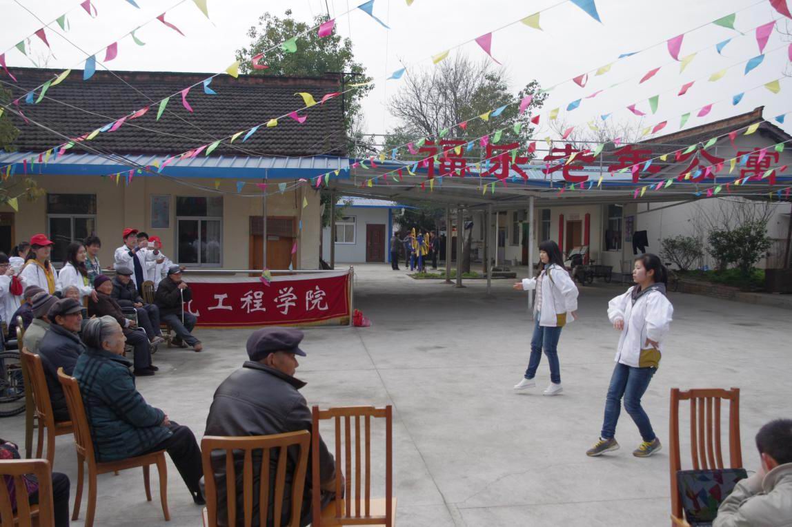 为了带给老人们更多的欢乐,同学们为老人表演了节目。优美的舞蹈,动人的歌曲,热情的朗诵,赢得了老人们会心的微笑和热烈的掌声。